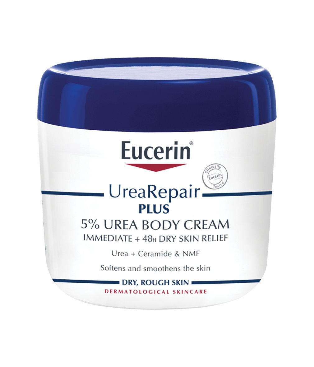 A moisturiser such as Eucerin’s UreaRepair PLUS 5% Urea Body Cream contains Ceramide (to repair the skin barrier and reduce moisture loss) and Urea and other NMFs (to bind water into the skin). The formula gives immediate relief and delays the symptoms of very dry skin (such as roughness and scaliness) for up to 48 hours.